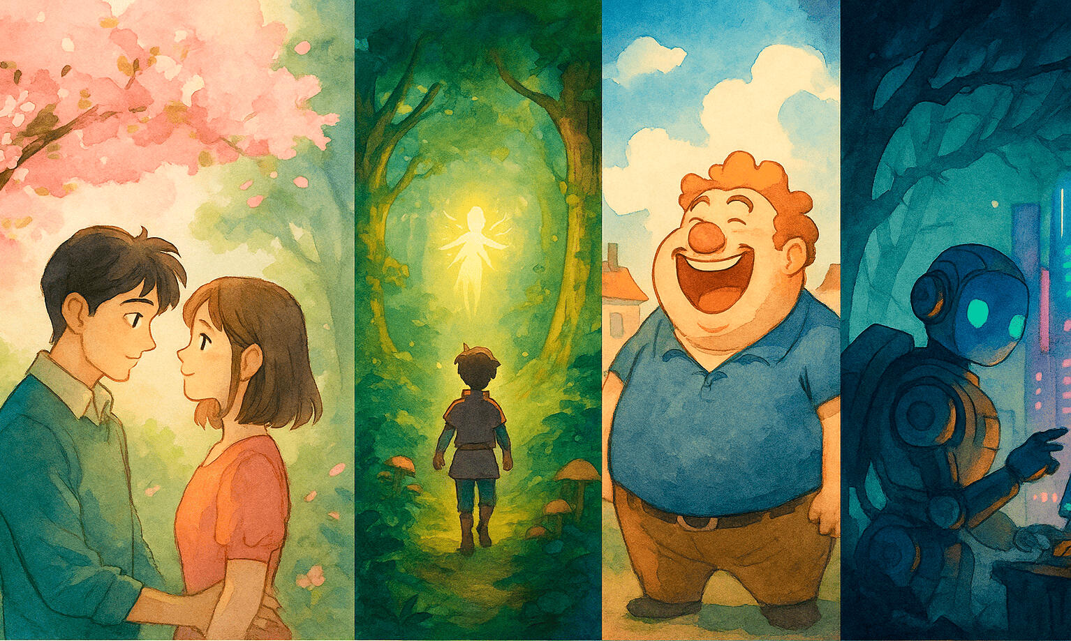 Criamos histórias com alma — ilustradas, contadas e moldadas em qualquer gênero: romance, fantasia, humor, drama, terror… A sua história, reinventada como você nunca imaginou.